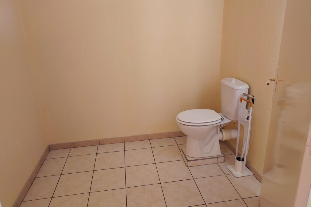 広い部屋に、ポツンとトイレ。この、落ち着かないトイレなに(笑)